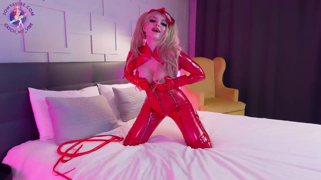Sonya Vibe - Red Latex Girl Fucks Her Creamy Holes
