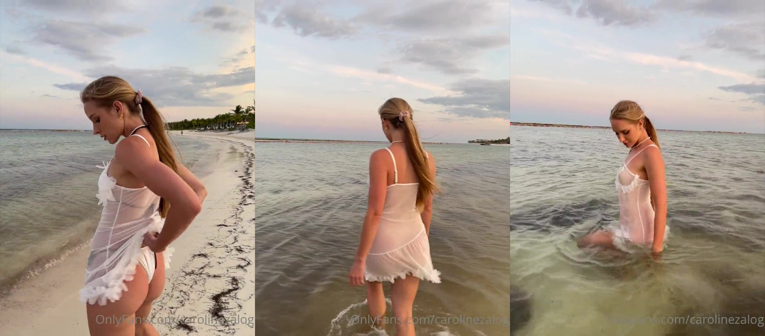 Caroline Zalog Nude Beach Wet See Through Onlyfans Video